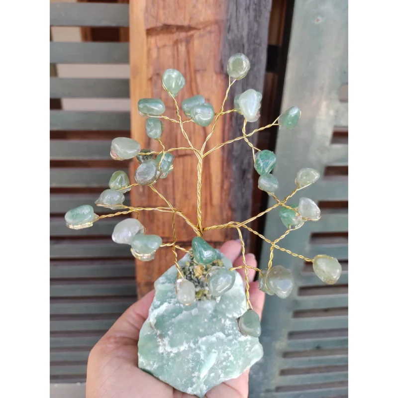 Árvore da Felicidade em Quartzo Verde DOURADA na base de pedra bruta ou rolada, em média cada Árvore possui de 12 a 15 centímetros.