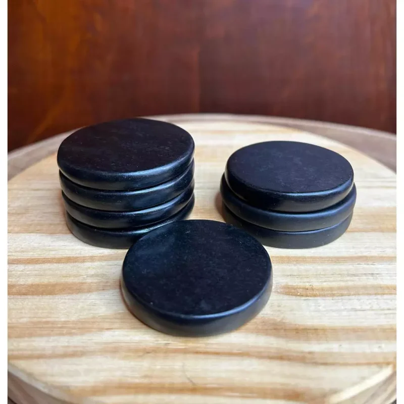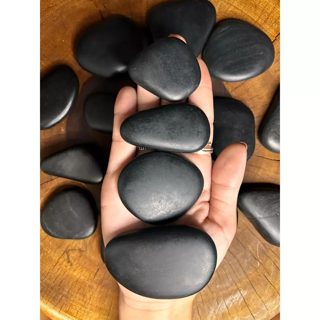 2) Kit com 10 Unidades de Pedras Quentes Vulcânicas para massagem facial, são pedras arredondadas e formadas manualmente.